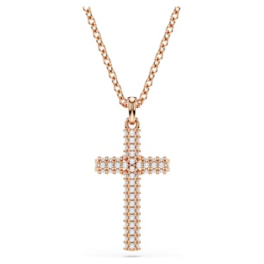 This symbolic pendant from the Insigne family is decorated with a full pavé of clear Zirconia on its stylish cross-shaped design. Along with a lobster closure, the rose gold-tone plated chain is completed with an additional stone at the end of the elongation. An expressive piece of jewelry for yourself, or a perfect gift for…