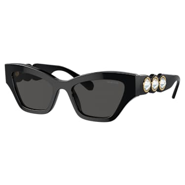 Go for bold glam with these oversized sunglasses featuring a refined touch of luxury. Inspired by our wondrous Mesmera family, the large black acetate frames are crafted with black lenses and a wrap of mixed-cut crystals around the metallic temples. An extravagant style that was born to stand out. Article no.:5679543 Inspired by collection: Mesmera…