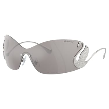 These signature sunglasses are inspired by the iconic swan – representing love, joy, and eternal beauty. The extraordinary design features silver mirrored lenses in a mask shape, along with a silver-tone swan silhouette on each temple, elegantly curved and embellished with a snowflake pavé of clear crystals. A graceful way to celebrate most famous emblem….