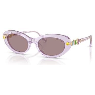 Go for bold glam with these oversized sunglasses featuring a refined touch of luxury. Inspired by our wondrous Mesmera family, the translucent gray acetate frames are crafted with dark purple lenses and a wrap of mixed-cut pink crystals around the metallic temples. An extravagant style that was born to stand out. Article no.:5679548 Inspired by…