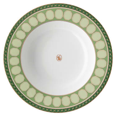 Make your first course one to remember with this stylish soup plate. Crafted from porcelain, it features a geometric pattern in’s signature octagon and our chic swan logo at the center. This soup plate is part of an exclusive collaboration with porcelain brand Rosenthal. It is dishwasher safe, however usage in the microwave is not…