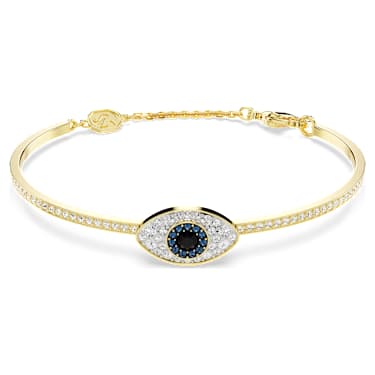Dress yourself in positivity with this Symbolica bangle. The gold-tone plated jewelry features a pavé band with a domed evil eye at its center, embellished with clear, blue, and black pavé. The soft closure ensures an easy and comfortable fit around the wrist. Wear this piece to welcome good energy every day. Article no.:5692171 Collection:…