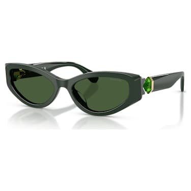 Make a statement with your style thanks to these charismatic sunglasses. Inspired by our iconic Millenia family, the elegant square frames are crafted from dark green acetate with matching lenses. On each temple, three peridot-green crystals are placed within a refined metallic bezel setting to form signature octagon shape. A confidently chic look that epitomizes…