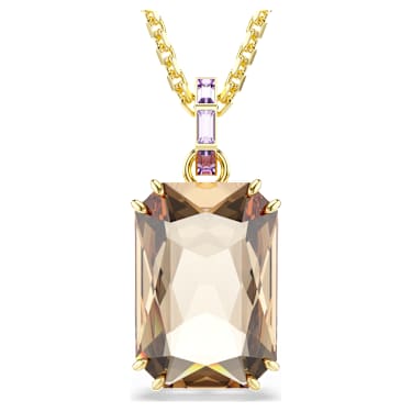 This glowing Millenia pendant is a creation of pure warmth and luxury. The central motif is crafted from a large caramel crystal in a double prong setting and connects to the gold-tone plated chain via an elegant bail adorned in channel-set purple crystals. Combine this pendant with a matching pair of earrings or a bangle…