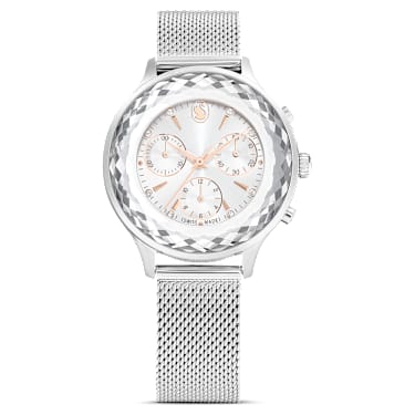 Epitomizing sports luxe style, this Nova watch is meticulously crafted to highlight mastery of design. The 37mm stainless steel case is seamlessly integrated with a beautifully faceted crystal bezel, as well as the watch’s sapphire glass. This frames the radiant sunray dial, which is adorned with a swan logo, crystal index markers, and three subdials…