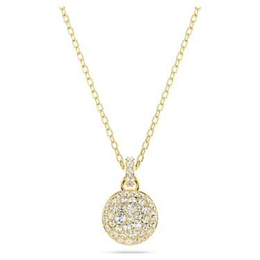 This galaxy-inspired pendant will bring dazzling impact to any style. The gold-tone plated design is worn on a delicate chain with a lobster closure and features a domed meteor motif that is beautifully adorned with a snow pavé of clear round crystals in different sizes. Wear it as a wondrous piece of light-catching joy. Article…