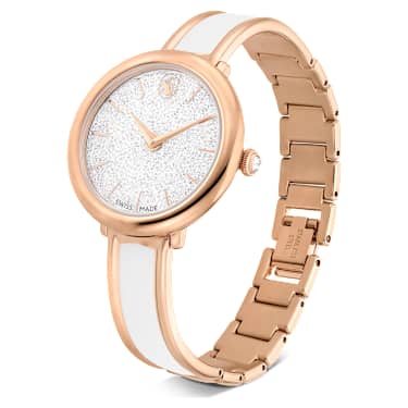 Part jewelry, part timepiece, this Crystalline watch is a glittering everyday accessory. The 32mm stainless steel design is rose gold-tone finished and is worn around the wrist on an adjustable bangle that features an elegant mid-section in white enamel. In a sublime example of Crystalline technique, the dial is decorated with around 1,016 crystals, which…