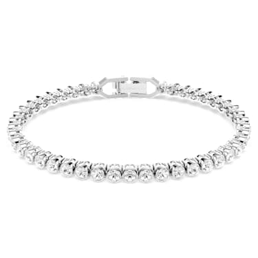 A classic Imber Emily Tennis bracelet with a gleam that speaks volumes! This delicate strand of bezel-set clear crystals on a rhodium-plated Imber Emily Tennis bracelet is very dainty and minimalistic in its look. However, it makes a bold statement of sheer elegance. It has a secure foldover clasp closure and comes with an extender….