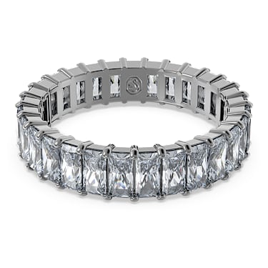 Combining a deep metallic look with eye-catching shine, this Matrix ring will make a versatile addition to your jewelry box. In a process that unites science and magic, grey princess baguette-cut stones are set on a ruthenium plated band. A captivating accessory that is perfect for stacking, allowing multiple combinations for all occasions. Article no.:5648914…
