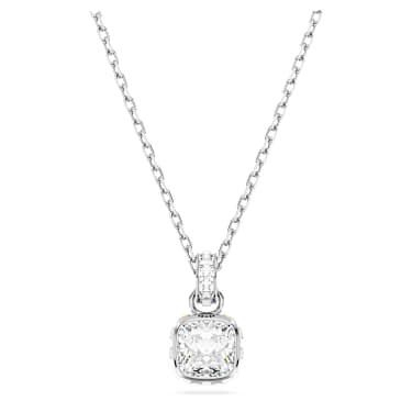 This delicate pendant is inspired by the birthstone of April. Hanging from a fine chain with a shimmering link of crystals, the rhodium plated jewelry features a single square-cut stone in a clear hue, representing strength, clarity, and the power within. This meaningful design makes a magical birthday gift or can be worn to celebrate…