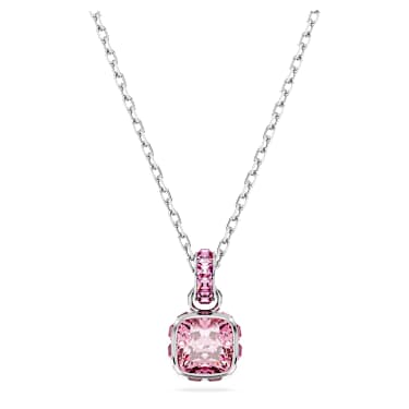 This delicate pendant is inspired by the birthstone of October. Hanging from a fine chain with a shimmering link of crystals, the rhodium plated jewelry features a single square-cut stone in an opal pink hue, representing endless creativity and optimism. This meaningful design makes a magical birthday gift or can be worn to celebrate a…