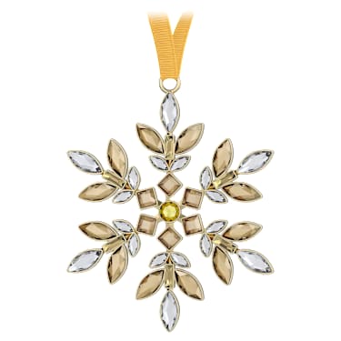 Inspired by the vibrant Gema family, this collection of radiant snowflake ornaments is presented in brand colors with a nod to the holiday season. This yellow piece is formed from 86 individual crystals in a variety of cuts and shades, applied on both sides using jewelry stone setting techniques. The design is suspended from a…