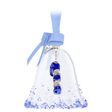 Ring in the start of the holiday season with this joyous bell ornament. The traditional motif has been skillfully crafted in glass with approximately 1,301 small crystal rocks covering the outside as if the piece has been dipped in sugar. A candy cane clapper in signature blue with luxurious gold-tone metal stripes is suspended in…