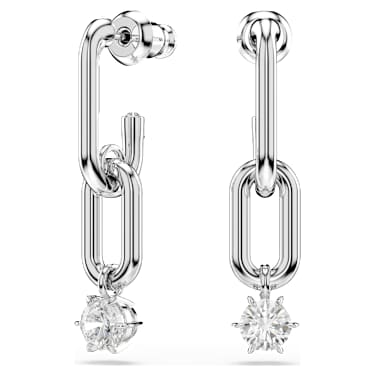 These playful earrings are a perfect choice for unexpected styling. Each piece features two interconnecting links in rhodium plating with a prong-set Zirconia that delicately hangs beneath. It’s a sleek, metallic look for any occasion, with an extra burst of light. Article no.:5728584 Collection: Constella Size: 1 1/4 x 1/4 inch Material: Crystals,Rhodium plated,Zirconia Color:…