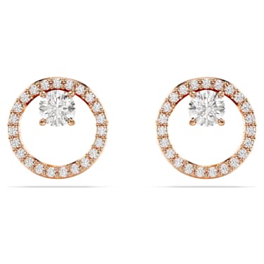 These refined circle studs exude timeless elegance. Each pierced piece is rose gold-tone plated and features a central pavé ring of clear Zirconia as well as a single prong-set Zirconia placed in the middle. Amp up the drama by pairing with a matching Constella pendant. Article no.:5692263 Collection: Constella Size: 3/8 x 3/8 inch Material:…