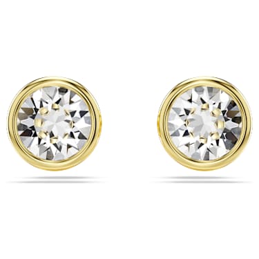 These simple pierced studs are a beautiful display of expert faceting. Each gold-tone plated piece features a round-cut crystal in a puffy bezel setting. A super everyday choice that can easily be paired with a bracelet or necklace from the Imber family. Article no.:5681552 Collection: Imber Size: 1/4 x 1/4 inch Material: Crystals,Gold-tone plated Color:…