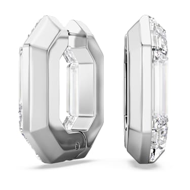 These mesmerizing mini hoop earrings are an exquisite example of mastery of light. Each clear crystallized hoop features a discreet post fastening and an easy-to-open hinge mechanism. A striking graphic piece with a sports luxe edge. Article no.:5696289 Collection: Lucent Size: 1 1/8 x 1/4 inch Material: Crystals,Aluminum Color: White Weight (individual piece): 0.26 oz