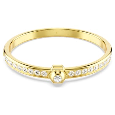 This Numina bangle combines radiant beauty with industrial style. The metallic piece is crafted with gold-tone plating and features an adornment of clear round crystals in different sizes. A distinctive and bold design that will carry you from day to night. Article no.:5681452 Collection: Numina Length: 6 3/4 inch Width: 1/4 inch Inner diameters: 2…