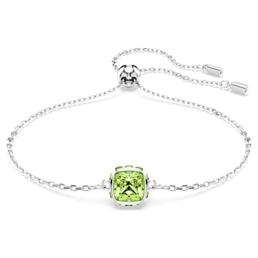 Infused with meaning, this bracelet is inspired by the birthstone of August. Crafted with a delicate chain, the rhodium plated jewelry features a square-cut crystal in a peridot-green hue, said to represent new perspectives and eternal empowerment. Perfect for a magical birthday gift or to celebrate a date that is significant to you. Article no.:5692882…