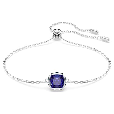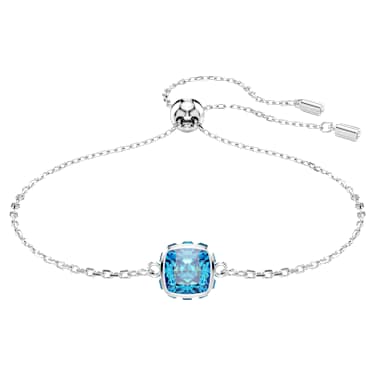 Infused with meaning, this bracelet is inspired by the birthstone of March. Suspended from a delicate chain, the rhodium plated jewelry features a single square-cut stone in a blue aquamarine hue, representing serenity and peacefulness. Perfect for a magical birthday gift or to celebrate a date that is significant to you. Article no.:5710515 Collection: Birthstone…