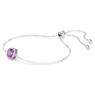 Infused with meaning, this bracelet is inspired by the birthstone of February. Suspended from a delicate chain, the rhodium plated jewelry features a single square-cut stone in a violet amethyst hue, representing the truest value of wisdom. Perfect for a magical birthday gift or to celebrate a date that is significant to you. Article no.:5710519…