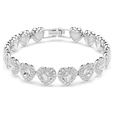 Love shines brightly in this bracelet, which takes romantic extravagance to the next level. The rhodium plated design features a full circle of heart-shaped crystals, each surrounded by a glittering halo of clear pavé. Pair this bracelet with other matching jewelry to create your own expressive combinations. Article no.:5720860 Collection: Ariana Grande Length (minimum –…