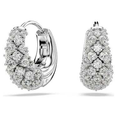 Delicate yet radiant, these shimmering earrings are rhodium plated and feature a stunning decoration of clear Zirconia, set in place using the chatonnage technique. An additional spring plate mechanism makes them particularly easy to wear. Combine these earrings with a wondrous Sublima pendant or a ring to infuse your entire look with light. Article no.:5732282…