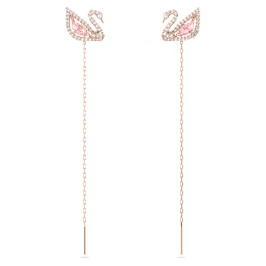 Enjoy multiple looks with this dazzling pair of versatile long-length pierced earrings. The iconic swan motif shines with a full-cut crystal body in cool millennial pink and crisp clear pavé lines. Wear as simple studs, or attach one, or both, of the delicate rose gold-plated chains for more statement style. A dainty design that will…