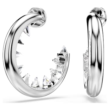 Add some impact to your style with these unexpected Sublima earrings. Each open hoop is rhodium plated and adorned with spike-shaped crystals on the inside. The look is radiant as well as alternative, giving you a playful modern accessory for everyday wear. Article no.:5723288 Collection: Sublima Size: 1 1/2 x 1/4 x 1 1/2 inch…