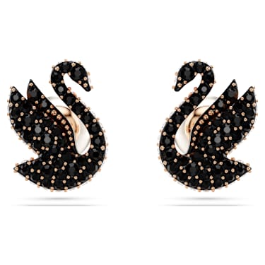 Inspired by the signature emblem of, these elegant earrings reveal a swan preparing to take flight. Each rose gold-tone plated piece features a single Crystal Pearl closure, along with a swan motif, expertly decorated with a pavé of jet black ReCreated™ crystals. These sophisticated earrings can be worn alone or paired with a matching pendant…