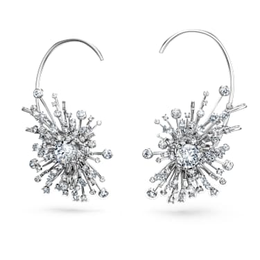 Exploding with light and artistry, these dramatic pierced earrings are a showstopping example of savoir-faire. The 18K white gold design features a laboratory grown diamond at the center, expertly faceted for maximum brilliance, and surrounded by a multitude of smaller laboratory grown diamonds in a variety of cuts and sizes. With each stone extending in…