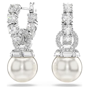 Amplify the elegance in your style with these Matrix pierced earrings. The rhodium plated pieces feature tennis hoops and connecting rings that are embellished with dazzling pavé, while the Crystal Pearls add a classic touch of pure refinement. It’s the reimagination of a timeless look that you can wear for almost any occasion. Article no.:5691716…