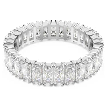 No jewelry collection is complete without a radiant band ring. This silver-tone finish design features a full surround of baguette-cut Zirconia, each placed within a refined prong setting. A sensational piece to wear solo or stacked with similarly dazzling rings from the Matrix family. Article no.:5714332 Collection: Matrix Material: Silver-tone finish,Zirconia Color: White