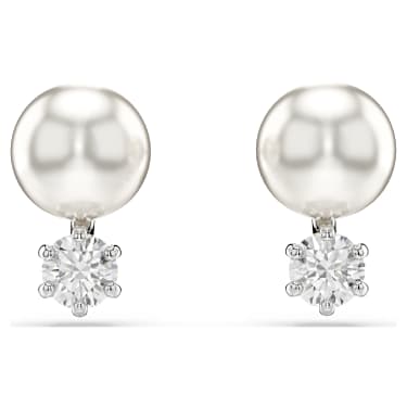 These stunning pierced studs are a fresh take on the classic pearl earring. Each rhodium plated piece features a single white Crystal Pearl and a round-cut Zirconia, linked in a refined display of light-filled luxury. Pair with a matching Matrix pendant for added radiance. Article no.:5694225 Collection: Matrix Size: 3/8 x 1/4 inch Material: Crystals,Rhodium…