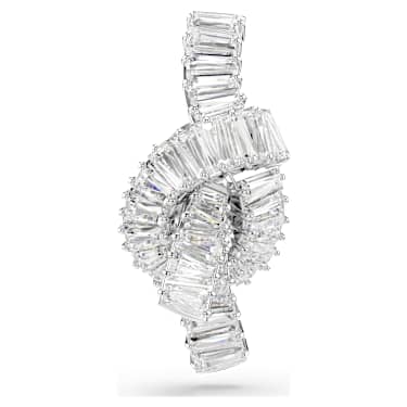 Attach a twist of light to any outfit with this captivating tack pin. The rhodium plated motif is inspired by a ribbon and delivers a tied-up adornment of baguette-cut Zirconia. Sensational on its own, or beautifully accompanied by the matching pieces in the same jewelry family. Article no.:5731102 Collection: Matrix Size: 1 1/4 x 5/8…