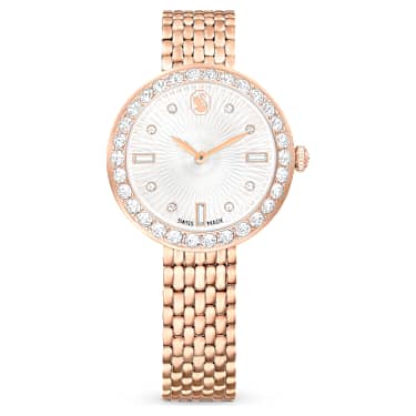 This elegant Matrix watch radiates contemporary style in every detail. The round 30mm case is made with a beautiful rose gold-tone finish and features a bezel set with a pavé of 30 crystals. Beneath the mineral glass, a mesmerizing guilloché dial is revealed, with the swan logo at 12 o’clock, along with indexes created from…