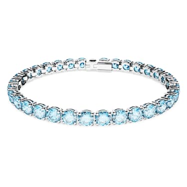 Surround your wrist in vibrant jewels with this glittering bracelet from the Matrix Tennis family. In perfectly formed fluidity, the design features a row of round stones in light aquamarine on a rhodium plated setting for a cool combination. Wear it alone, or pair it with other pieces from the Matrix Tennis family. Article no.:5648927…