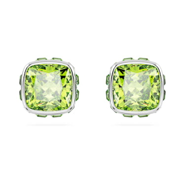 Vibrant, versatile and easy-to-wear, this pair of pierced stud earrings is inspired by the birthstone of August. The rhodium plated jewelry features a single square-cut stone in a lime green hue, said to reduce stress and anger for the wearer while bringing them closer to nature. A meaningful gift for a loved one or a…