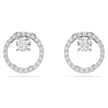 These refined circle studs exude timeless elegance. Each pierced piece is rhodium plated and features a central pavé ring of clear Zirconia as well as a single prong-set Zirconia placed in the middle. Amp up the drama by pairing with a matching Constella pendant. Article no.:5692262 Collection: Constella Size: 3/8 x 3/8 inch Material: Rhodium…