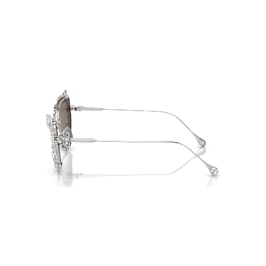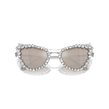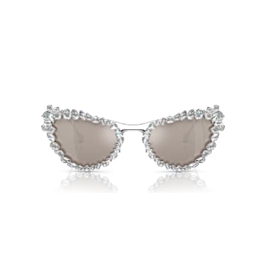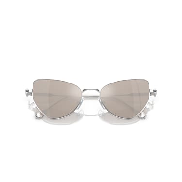 These versatile sunglasses can be worn in multiple ways, giving you the choice of extravagant or subtle style. Inspired by our Mesmera jewelry range, the design features gunmetal frames with mirror platinum lenses and crystals on the temples and tips. The look can also be enhanced with a crystallized clip-on frame, which surrounds the lenses in a bold mix of stone cuts. A pair of sunglasses that can change your look in an instant.