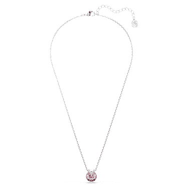 This romantic V-shape pendant has eye-catching appeal thanks to its central pink crystal set in rhodium plating. A flourish of shimmering pavé adds an extra layer of beauty, while the delicate chain exudes pure elegance. Wear it together with the matching earrings for a wondrous combination.
