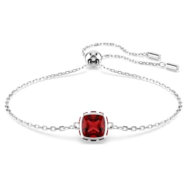 Infused with meaning, this bracelet is inspired by the birthstone of January. Suspended from a delicate chain, the rhodium plated jewelry features a single square-cut stone in a garnet red hue, representing protection as you face the day. Perfect for a magical birthday gift or to celebrate a date that is significant to you.