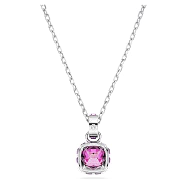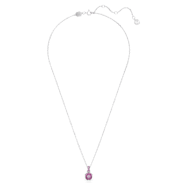 This delicate pendant is inspired by the birthstone of February. Hanging from a fine chain with a shimmering link of crystals, the rhodium plated jewelry features a single square-cut stone in a violet amethyst hue, representing the truest value of wisdom. This meaningful design makes a magical birthday gift or can be worn to celebrate a time that is significant to you.