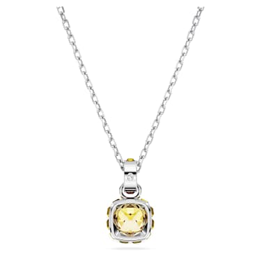 This delicate pendant is inspired by the birthstone of November. Hanging from a fine chain with a shimmering link of crystals, the rhodium plated jewelry features a single square-cut stone in a topaz yellow hue, representing clarity and optimism for the days ahead. This meaningful design makes a magical birthday gift or can be worn to celebrate a time that is significant to you.