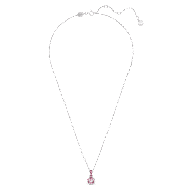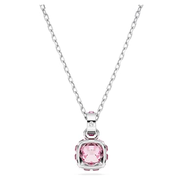 This delicate pendant is inspired by the birthstone of October. Hanging from a fine chain with a shimmering link of crystals, the rhodium plated jewelry features a single square-cut stone in an opal pink hue, representing endless creativity and optimism. This meaningful design makes a magical birthday gift or can be worn to celebrate a time that is significant to you.