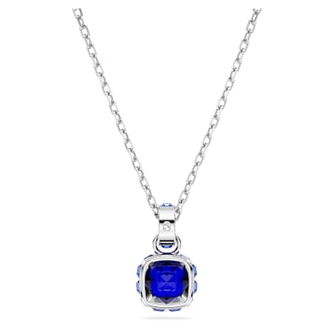This delicate pendant is inspired by the birthstone of September. Hanging from a fine chain with a shimmering link of crystals, the rhodium plated jewelry features a single square-cut stone in a sapphire blue hue, which excites and delights, while also representing knowledge. This meaningful design makes a magical birthday gift or can be worn to celebrate a time that is significant to you.