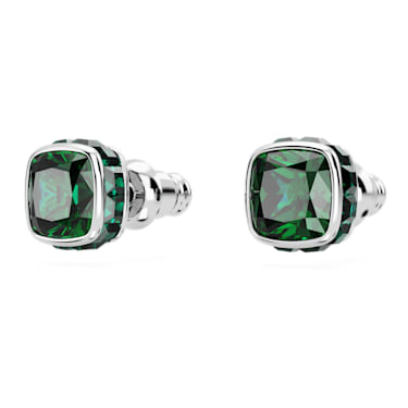 Vibrant, versatile and easy-to-wear, this pair of pierced earrings is inspired by the birthstone of May. The rhodium plated jewelry features a square-cut stone in a forest green hue, a nature-inspired color signifying faithfulness and passion, wisdom and patience, enabling wearers to see the beauty in the world. This meaningful design makes a magical birthday gift or a perfect gift for yourself.
