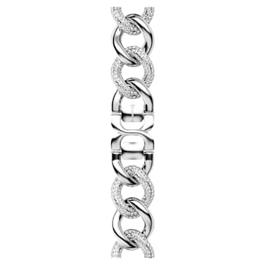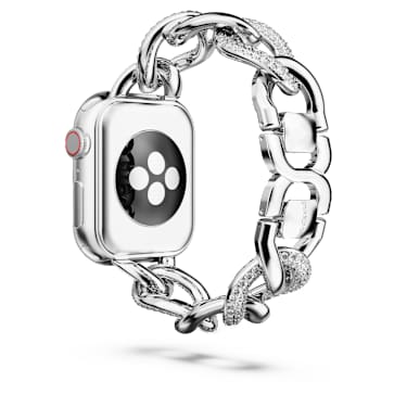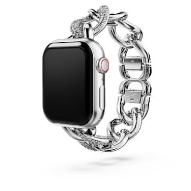 Keep time in style with this striking strap crafted for compatibility with Apple Watch®. The eye-catching design features a chain of stainless steel links, with every second link adorned in clear crystals. Style with your jewelry. This strap suits Apple Watches® sized 40mm or 41mm, including Series 4 – 9 and SE. Apple Watch® is a trademark of Apple Inc. This product is delivered with a standard size bracelet and two additional links, enabling it to be made longer or shorter with the help of our instore staff.