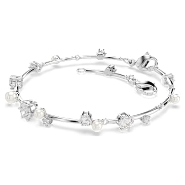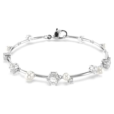 Take on a starry glow in this glittering Constella bracelet. Inspired by the wonder of the night sky, the design features a cluster of different sized Zirconia and Crystal Pearls, which appear to float among the jewelry’s metallic bars. The easy lobster closure provides comfortable wearability around the wrist. Style this with other pieces of Constella jewelry to create your own cosmic aura.