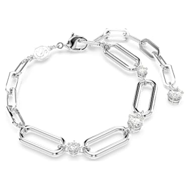 This rhodium-plated bracelet is luxuriously engineered to emphasize the star-filled styling of the Constella family. Fastened with a lobster closure, the stunning piece features an industrial-inspired chain, with round prong-set Zirconia placed between the central links. Wear it to give your everyday look a dazzling metallic edge.